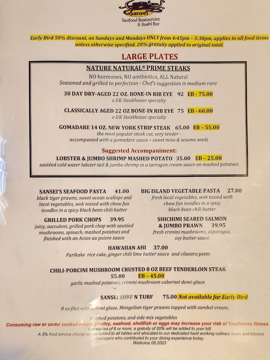 Welcome to Sansei Seafood Steak & Sushi Bar, a culinary gem nestled in the heart of Waikoloa Village, Hawaii. This renowned Japanese restaurant seamlessly blends the freshness of sushi with the rich flavors of expertly grilled steaks, making it a must-visit destination for both locals and tourists seeking an unforgettable dining experience.
