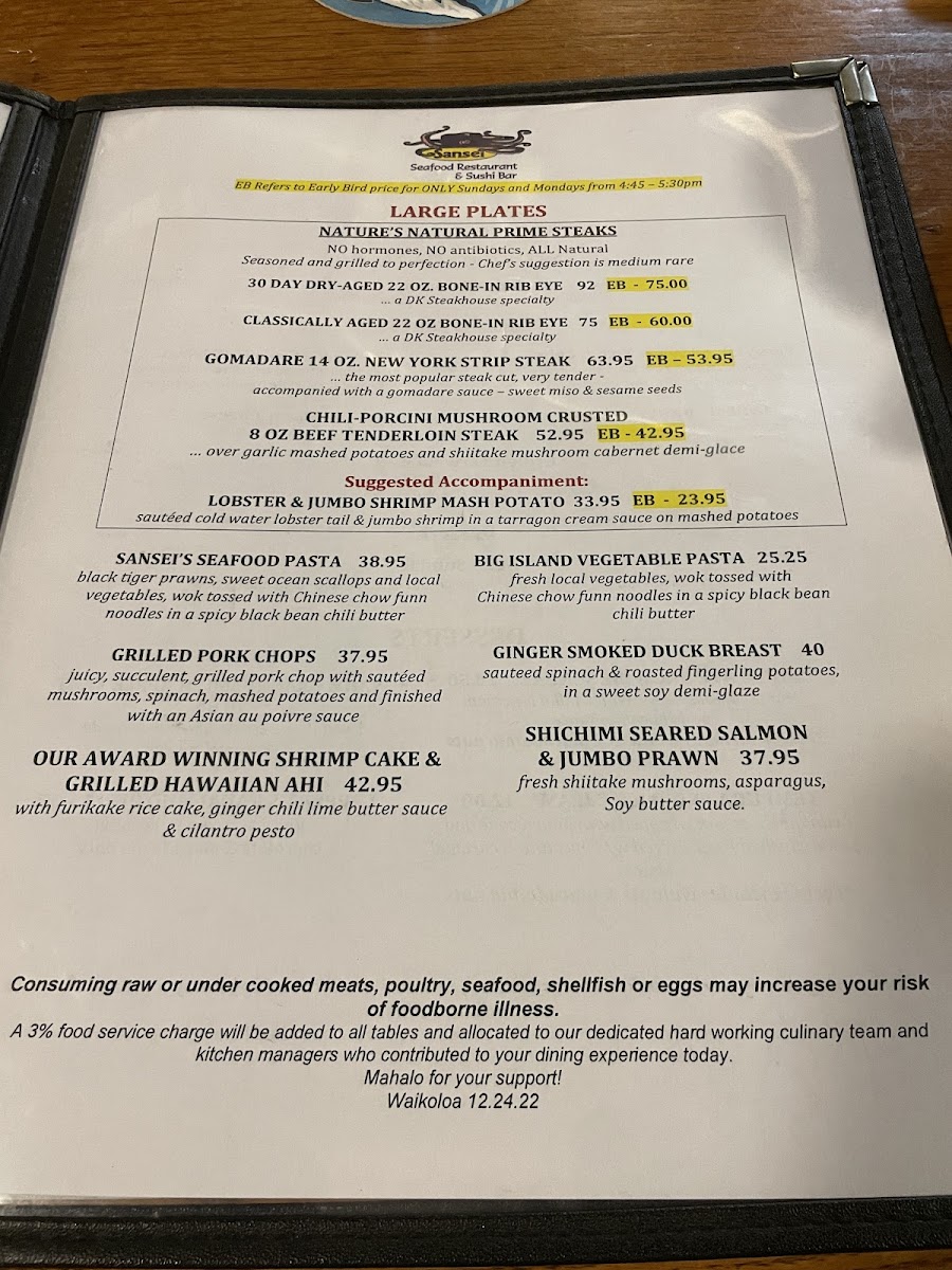 Whether you're celebrating a special occasion or simply treating yourself to a night out, Sansei Seafood Steak & Sushi Bar promises a delightful fusion of flavors and experiences that will linger in your memory long after the meal is over. Join the ranks of satisfied diners who have embraced this culinary oasis, and immerse yourself in the vibrant tastes of Hawaii!